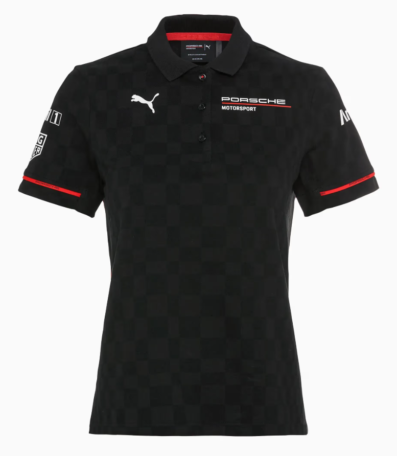 Experimente a pura paixão do automobilismo com a coleção Porsche Motorsport Replica e sinta o espírito de equipa das pistas. Detalhes em vermelho vibrante e o icónico padrão Pascha dos anos 70 combinam a rica história da Porsche com a dinâmica das corridas. A polo para mulher apresenta um visual desportivo com carcela de botões na frente e um corte ligeiramente cintado. Visualmente, a peça é realmente um destaque graças ao padrão Pascha integral tom-sobre-tom. Um detalhe especial: a paspelagem em vermelho nas mangas e no interior da gola. O carácter motorsport é enfatizado pelas impressões do logótipo e dos patrocinadores, bem como pela etiqueta “Raceborn” nas costas.