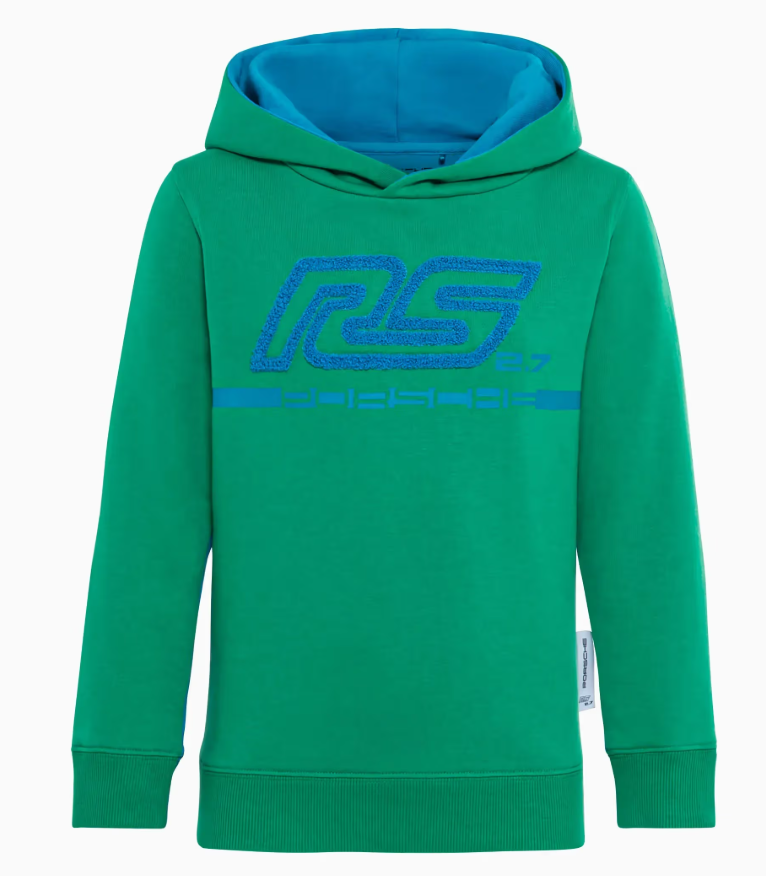 O design deste aconchegante hoodie infantil da coleção RS 2.7 presta homenagem à vibrante paleta de cores do icônico Porsche 911 Carrera RS 2.7, apresentado no Salão de Paris em 1972. Na frente, destaca-se uma aplicação em terry cloth com o texto “RS 2.7” e a impressão “Porsche”. Nas costas, o logotipo Porsche reforça a identidade esportiva da peça.