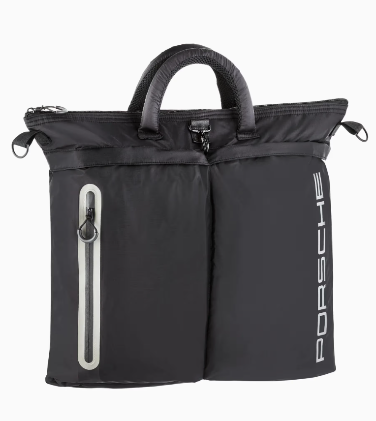 Na parte frontal, há uma impressão em silicone com o nome “PORSCHE”.